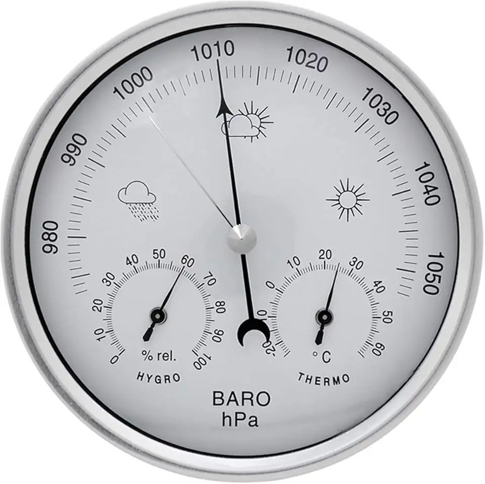La JAOK Barómetro analógico es la solución perfecta para quienes desean monitorear el clima con estilo. Este dispositivo 3 en 1 combina un barómetro, termómetro e higrómetro, todo en un elegante marco de acero inoxidable plateado. Ideal para interiores y exteriores, te ofrece lecturas precisas y un diseño sofisticado que complementa cualquier espacio. No dejes pasar la oportunidad de tener el control del clima en tus manos, adquiere la tuya hoy mismo.
