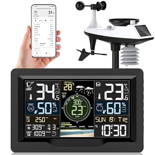 La estación meteorológica Jely es tu aliada perfecta para conocer el clima en tiempo real. Con su conectividad WiFi y una intuitiva aplicación, podrás monitorear la temperatura, la humedad, la velocidad del viento y la precipitación desde cualquier lugar. Su diseño elegante y sus sensores precisos garantizan datos fiables tanto en interiores como exteriores. No dejes que el clima te sorprenda, adquiere la Jely y mantente siempre informado.