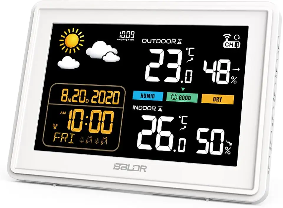 La Konsen Estación Meteorológica Inalámbrica es la herramienta ideal para quienes desean estar siempre informados sobre las condiciones climáticas. Con un diseño moderno y funcional, esta estación no solo proporciona datos precisos de temperatura interior y exterior, sino que también cuenta con un sensor exterior DCF radio que garantiza lecturas confiables. Su pantalla a color con grandes números facilita la visualización de la información, mientras que su iluminación duradera asegura que puedas consultar los datos en cualquier momento del día. No permitas que el clima te tome por sorpresa; con la Konsen Estación Meteorológica, estarás siempre un paso adelante.