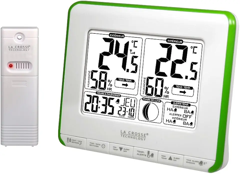 La estación meteorológica La Crosse Technology WS6812W-GREEN es la solución perfecta para quienes desean tener un control total sobre las condiciones climáticas en su entorno. Con un diseño elegante en blanco y verde, esta estación no solo es funcional, sino que también se convierte en un atractivo elemento decorativo para cualquier hogar. Su capacidad para ofrecer alertas precisas y un seguimiento de las fases lunares la hace destacar entre otras opciones del mercado. Con una pantalla fácil de leer, podrás monitorear la temperatura, la humedad y las condiciones climáticas en tiempo real, asegurando que nunca te sorprenda el clima. ¡No dejes pasar la oportunidad de tener el control del clima en tus manos!