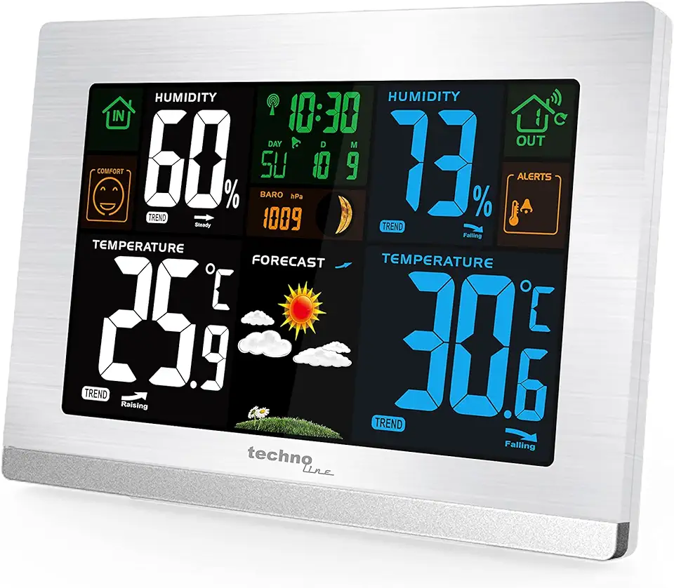 La Technoline WS6462 es más que una simple estación meteorológica; es tu aliado perfecto para comprender y anticipar las condiciones climáticas de tu entorno. Con su diseño moderno y funcional, esta estación inalámbrica te proporciona datos precisos sobre la temperatura interior y exterior, la humedad y la presión atmosférica. Además, cuenta con un indicador de tendencia y fases de luna, lo que la convierte en una herramienta indispensable para los amantes de la meteorología y aquellos que desean estar siempre informados sobre el clima. Su pantalla a color no solo es atractiva, sino que también facilita la lectura de los datos, haciendo que la información sea accesible para todos.